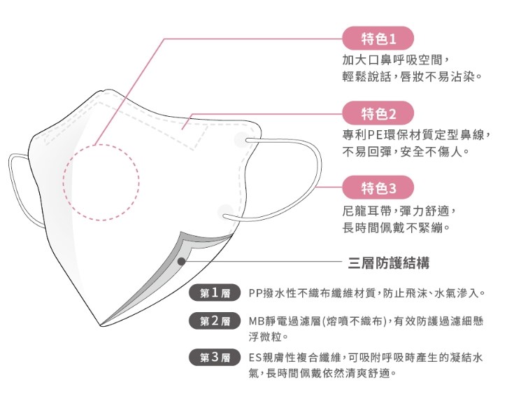 【口罩尺寸】長 11 公分 x 寬 14 公分 ± 0.5 公分(建議測量鼻尖至耳朵的距離) 【主要材質】不織布 【有效期間】5年 【花色】黑 / 白 / 卡布奇諾 / 蜜桃橘 / 鐵灰 【包裝】30 入/盒,40 盒/箱